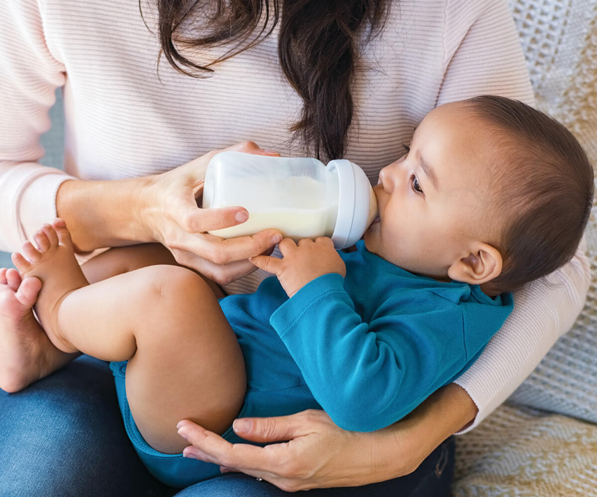Leche de vaca u otras leches sin lactosa (como leche de soya o almendra). Es demasiado difícil de digerir para tu bebé y puede ocasionar problemas de salud.