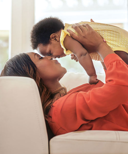 1. Recuéstese sobre una almohada con la pancita del bebé en contacto con la suya y la cabeza del bebé a la altura del pecho. A algunas mamás les resulta cómodo estar sentadas en posición casi erguida. Otras prefieren inclinarse hacia atrás y quedar casi acostadas por completo.