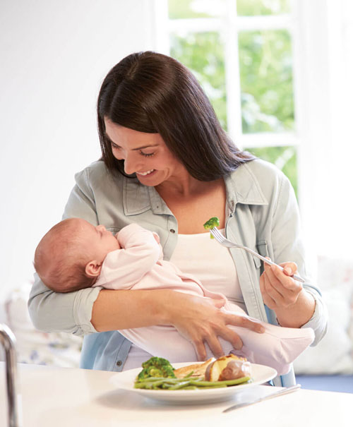 3. En esta posición, puede abrazar la espalda del bebé con el brazo izquierdo y apoyarse sobre el brazo derecho o sobre almohadas.